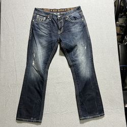 Rock Revival Men's Dark Wash Benson Straight Jeans Embellished Pockets Size 38$90Phoenix, AZ