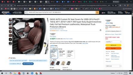 OASIS AUTO Custom Fit Seat Covers for 2009-2014 Ford F-150 & 2011-2016 F-250 F-350$155Phoenix, AZ