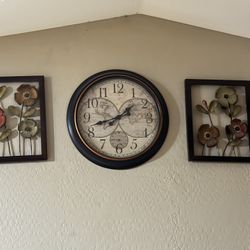 Clock And 2 Piece Flower Wall Art $15Maricopa, AZ