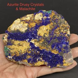 Azurite Deep Blue Drusy Crystals & Malachite Stone from Morocco 157g$30Queen Creek, AZ