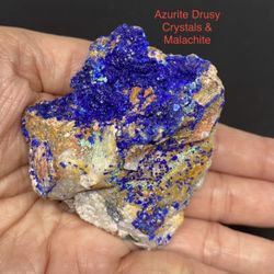 Azurite Deep Blue Drusy Crystals & Malachite Stone from Morocco 1.16lbs$50Queen Creek, AZ