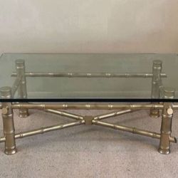 Antique Vintage Mid Century Modern Hollywood Regency Gold Glam Thick Faux Bamboo Base Glass Top Coffee Cocktail Table$395Tempe, AZ
