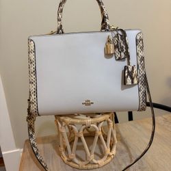 Coach Zoe Chalk Exotic Snakeskin Trim Top Handle Satchel Bag F68293 $250Phoenix, AZ