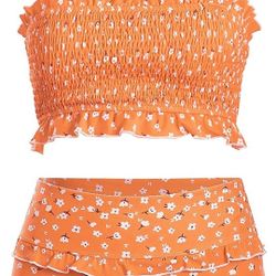 SMALL, Women Printed Strapless Shirred Smocked High Cut Bandeau Two Pieces Bikini Set Swimsuit$20Phoenix, AZ