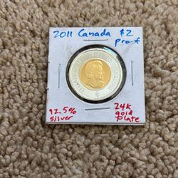 2011 Canadian Dollar Proof 92.5% Silver 24k Gold Plate$20Queen Creek, AZ