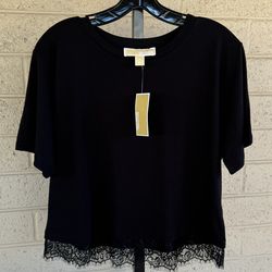 New NWT Michael Kors Women’s Cropped Black Lace Bottom Top Size M - MSRP $88$35Mesa, AZ