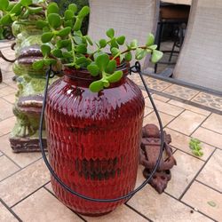 $10 Each Red Glass Propagation Container With Easy Care Elephant Plant OR Candle Holder. Garden Decor $10Gilbert, AZ