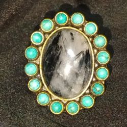 Signed OLLIPOP BRASS FAUX TURQUOISE And Seedpearl Stone Statement Ring$10Phoenix, AZ