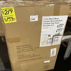 し Porter Black Metal Counter Stool with Back and Haze Oak Finish REtAIL Seat (Set of 2) $153Phoenix, AZ