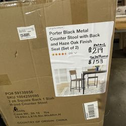 Porter Black Metal Counter Stool with Back and Haze Oak Finish Seat (Set of 2) $153Phoenix, AZ