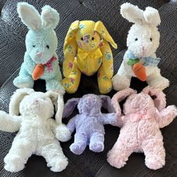 Lot of 6 Plush Easter Bunnies – Colorful & Soft – Ribbon & Carrot Details $25Mesa, AZ