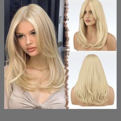 FESHFEN Blonde Wigs With Bangs - Long Layered Straight Light Blonde Natural Looking Synthetic Hair Wig For Women Daily Party Use, 18 Inch$15Laveen Village, AZ