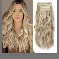 4PCS Synthetic Ash Blonde Highlighted Bleach Blonde Clip In Hair Extensions 20 Inch Long Wavy Synthetic Hair Extensions Thick And Full For Women$15Phoenix, AZ