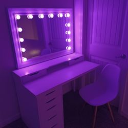 Vanity Set, Large White Vanity Mirror, With White Desk And White Chairs And White Drawers$349Mesa, AZ