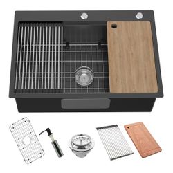 Black Kitchen Sink Workstation, 33x22 Inch Stainless Steel Drop In Kitchen Sink Modern Large Single Bowl Kitchen Sink Gift Combo-SS Grid,Drying Rack,C$145Queen Creek, AZ