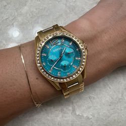 Rose gold tone Fossil watch with teal face$25Tempe, AZ