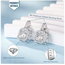 Moissanite Earrings, 18K White Gold Plated Sterling Silver Moissanite Earrings for Women, 1.0ct - 2.0ct D$80Glendale, AZ