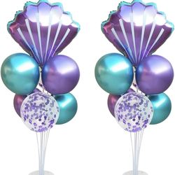 Mermaid Table Centerpiece Balloons Stand Kit 2 Sets with 2 Sea Shells Foil Balloons 14 Purple Blue Latex Balloons for Birthday Beach Mermaid Theme Sea$12Phoenix, AZ