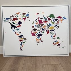 42x32” Multicolor Pop Art - Wood Framed World Map Dinosaurs Canvas Wall Art by Michael Tompsett$80Gilbert, AZ