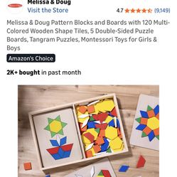 Melissa & Doug Pattern Blocks and Boards with 120 Multi-Colored Wooden Shape Tiles, 5 Double-Sided Puzzle Boards, Tangram Puzzles, Montessori Toys for$10Phoenix, AZ