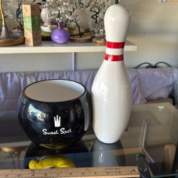 Bowling ball and pin cookie jar or flower base$15Glendale, AZ