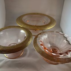 Set of 3 Antique Bohemian Pink Glass Gilt Compotes – Art Nouveau Etched Gold Tazzas, c.1900–1920$100Avondale, AZ