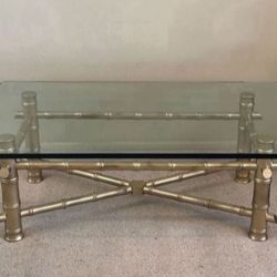 Antique Vintage Mid Century Modern Hollywood Regency Gold Glam Thick Faux Bamboo Base Glass Top Coffee Cocktail Table$395Tempe, AZ