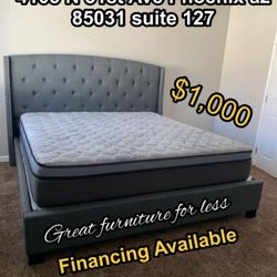 King Size Bed Frame Grey With Pillow Top Mattress And Boxspring Brand New$1,000Phoenix, AZ