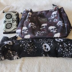 Medulla YYDS Skull And Floral Purse / Handbag Plus Iron Fist Skull Wallet And Skull Scarf DOD$15Sun City, AZ