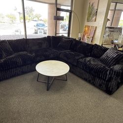 Sectional And Ottoman In Black Corduroy Fluffy Fabric $799Glendale, AZ
