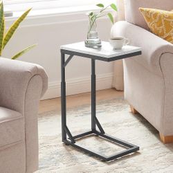 New C-Shaped End Small Sofa Side Table with Black Metal Frame, Adjustable Height, White Faux Marble $40Queen Creek, AZ