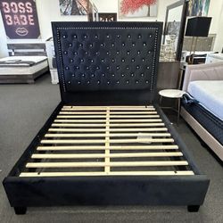Queen Bed Frame In Black Velvet With Crystals $499Glendale, AZ