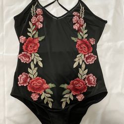 Black Open Back Bodysuit W Roses Along The Sides - Size M $5Phoenix, AZ