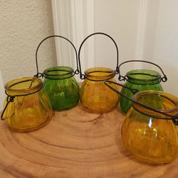 A Set of 5 Halloween Pumpkin Shape Hanging Glass Tealight Votive Candle Holders Yellow & Green Color.$25Peoria, AZ