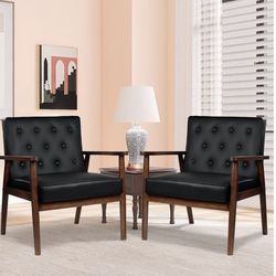 JIASTING Mid-Century Retro Modern Solid Wood Armrest Black Accent Chairs Set of 2, Faux Leather Arm Chairs for Living Room, Waiting Room Chairs (2, Bl$120Glendale, AZ