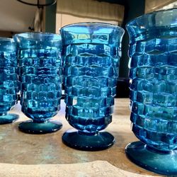 Set of 4 Vintage Riviera Blue Whitehall Cubist Footed Iced Tea Glasses | Mid-Century Indiana Glass $65Avondale, AZ