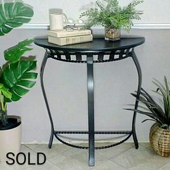 Half Circle Console Black Wood Top, Black Wrought Iron Legs (round front, flat back) 32h"x 30w"x14d" demilune, credenza, side table, sofa table, entry$55Mesa, AZ