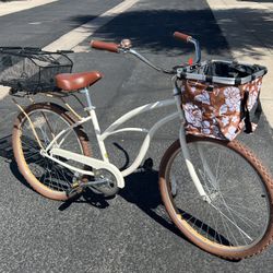 White/Cream and Brown Beach Cruiser Bike Bicycle + Accessories (baskets, lock)$125Phoenix, AZ