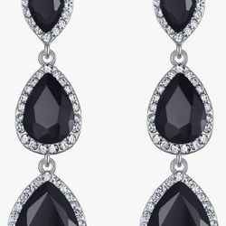 Women's Austrian Crystal Teardrop Pear Shape 2.5 Inch Long Earrings Black Color$12Phoenix, AZ