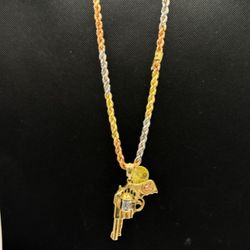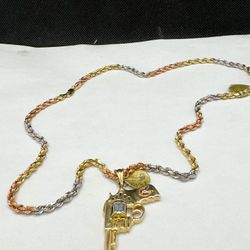 14k solid three tone gold rope chain and revolver pendant gun , necklance gold pendant$2,785Phoenix, AZ