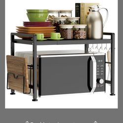 YIUKEA Extendable Microwave Oven Rack - Adjustable Kitchen Counter Shelf, 2 Tier Microwave Stand (L15.7~23.6" XW12.8 XH17.7) With 6 Hooks For Kitchen $42Phoenix, AZ