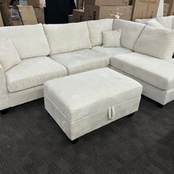 Cream Comfy Corduroy Sectional And Ottoman $699Mesa, AZ