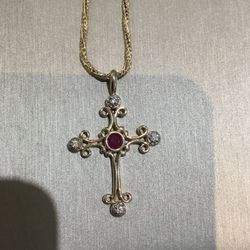 STUNNING Round Ruby & Diamond 14K GOLD Cross Pendant Necklace$2,490Sun City, AZ