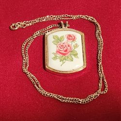 Vintage Avon Rose Porcelain Goldtone Pendant Necklace 18" With Box$15Sun City, AZ