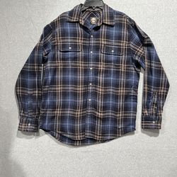 Timberland Mens Flannel Shirt Long Sleeve Plaid Blue Tan Medium M$28Phoenix, AZ