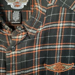 Harley Davidson Plaid Flannel Shirt Black Orange Logo Men’s Large Tall Lt$15Mesa, AZ