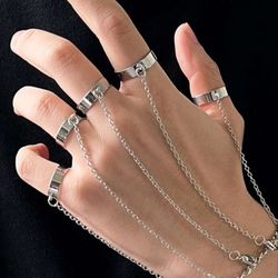 1pc Simple Fashionable Y2k Style Five Finger Rings Connected With Bracelet, Party, Holiday, Streetwear Accessories$5Peoria, AZ