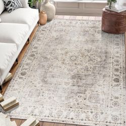 Washable Area Rug 9'x12' Beige Blue Boho Chic Medallion Distressed Design Non-Shedding Easy Care Ideal for High Traffic Areas in Living Room Bedroom O$100Avondale, AZ