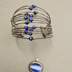 VINTAGE BLUE EYE CAT CUFF BRACELET & GLASS PENDANT $19Peoria, AZ