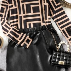 Tween Girl 2pcs/Set Autumn/Winter Business Style Geometric Print T-Shirt And Skirt Size 10$12Phoenix, AZ